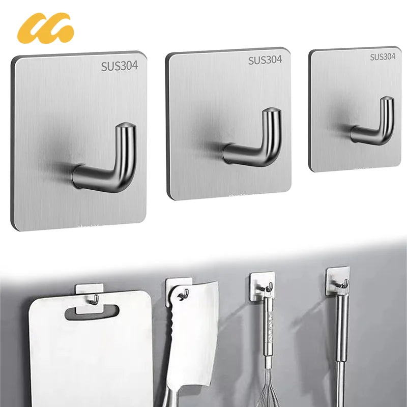This sleek Self adhesive wall hook is great for anything. Heavy duty and can hold most anything. Just press and stick in place.