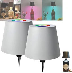 Fits most bottles perfect and centered. Can make for great gifts. Place them anywhere around the house poolside or deck. These lamps are a great addition to any home decor!