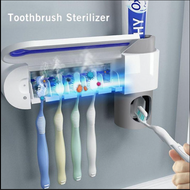 uv toothbrush sterilizer with totthpaste dispencer and toothbrush holder